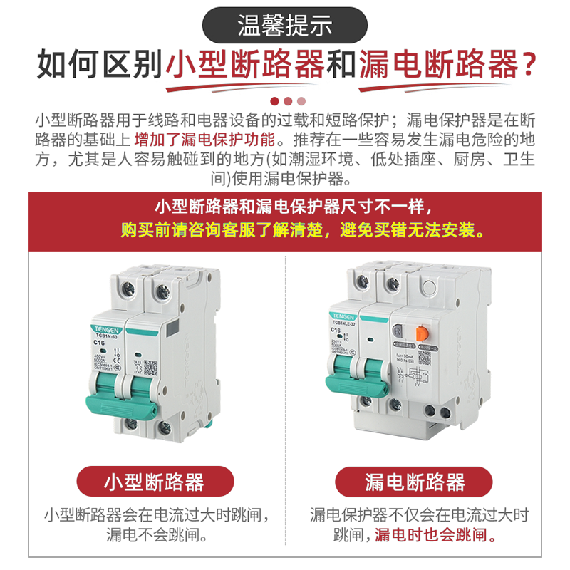 Tianzheng small leakage protection circuit breaker TGB1NLE-63 leakage protection D-type power type 1P N 2P 3P N 4P