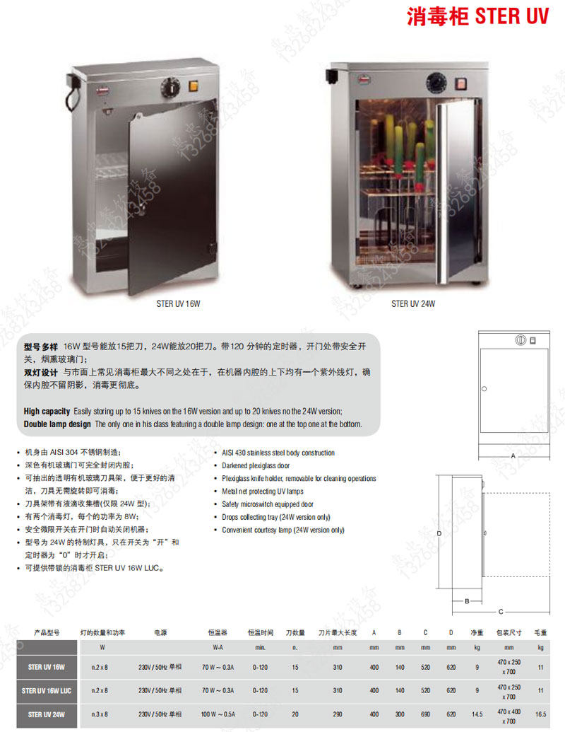 Italian SIRMAN Shuven STER UV 16W UV cutter Sterilization Cabinet 24W Stainless Steel Shell Commercial