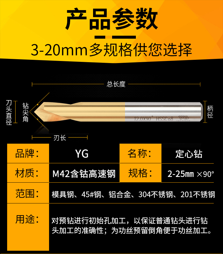 South Korea imported YG centering drill 90deg cobalt containing positioning drill M42 Stainless steel 2345681012 14 16