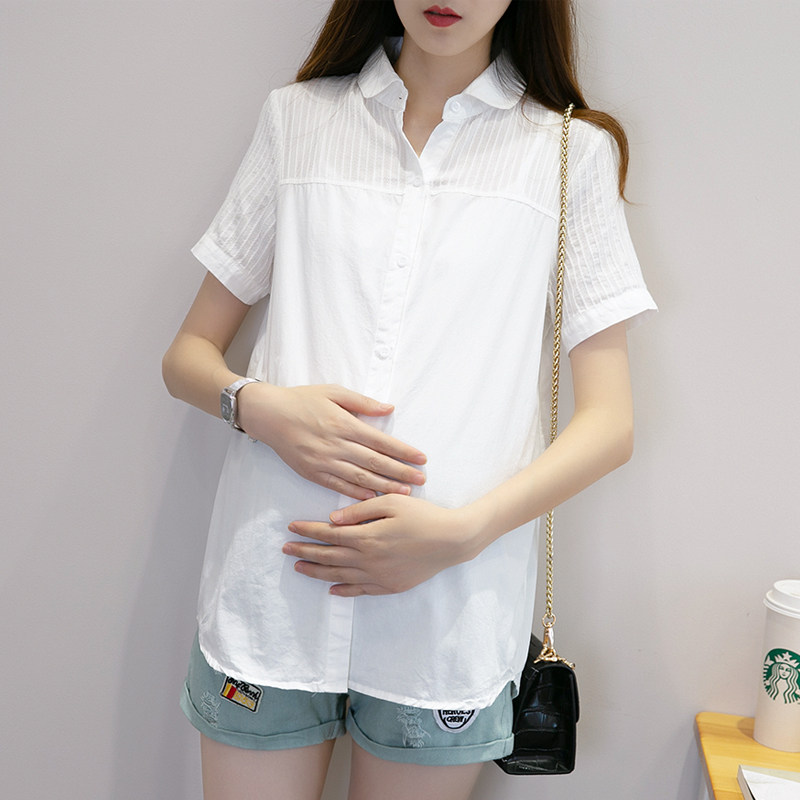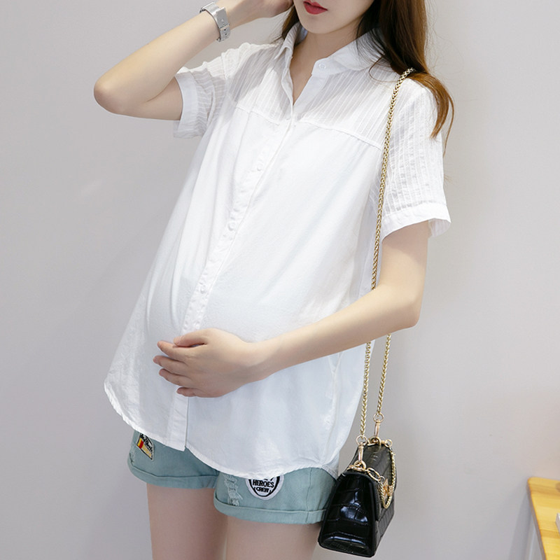 Lapel Short Sleeve White Shirt 2022 Summer Fashion Maternity Wear Short Professional Maternity Top Cotton Maternity Shirt