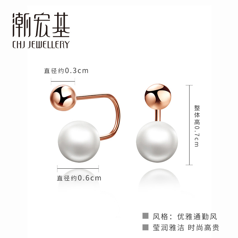 Chao Hongji Jewelry Zhen embellished red 18k gold screws pearl stud earrings Rose gold earrings ear hook female B
