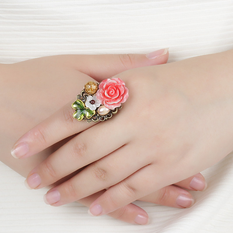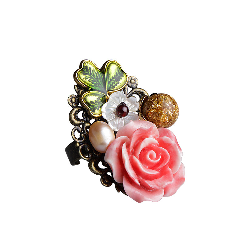 Renaissance ring female national wind ring indexing ring powderflower rose flowers decoration palace personality style decoration