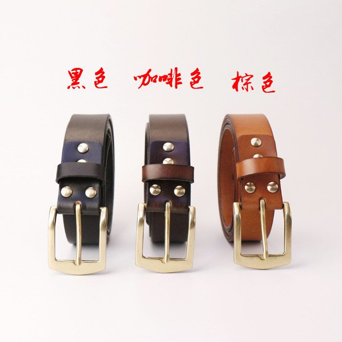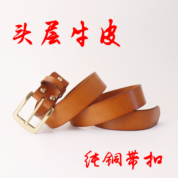 Double twelve Americas Implanted Tanning Leather Cow Leather Ultra Thick Strap Men's Belt Korean version Fashion pure copper needle buttoned pants Leading layer