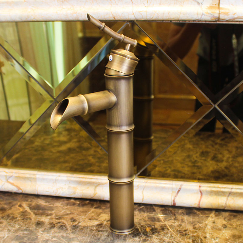 Full copper European-style imitation ancient tap retro bamboo festival single-pore surface basin tap art basin hot and cold tap