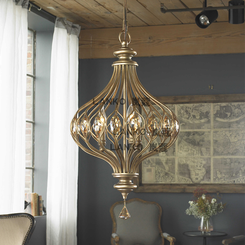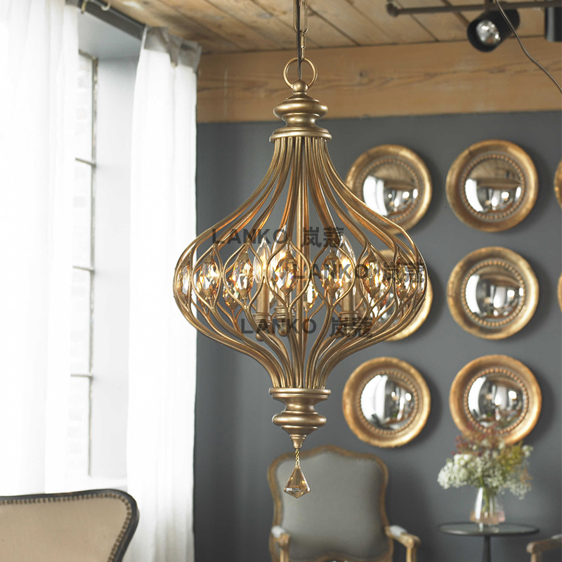 American crystal chandelier wrought iron retro dining room bar personality bar clothing store cafe industrial windproof lamps