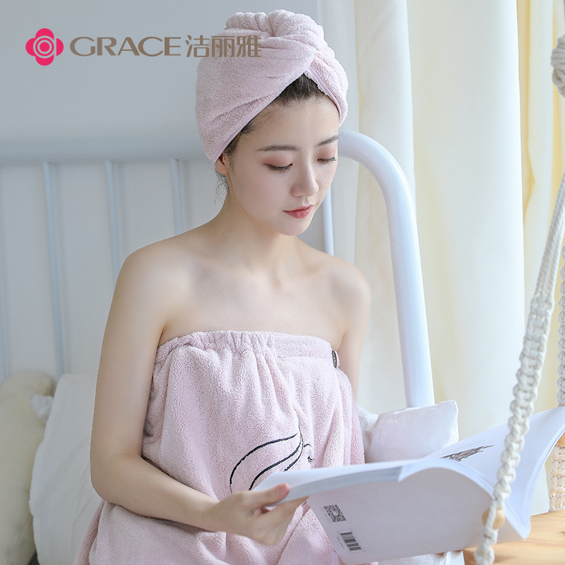 Jie Liya bath towel household non-cotton adult women water absorption speed dry cleaning bath can wear wrap bath skirt three-piece set