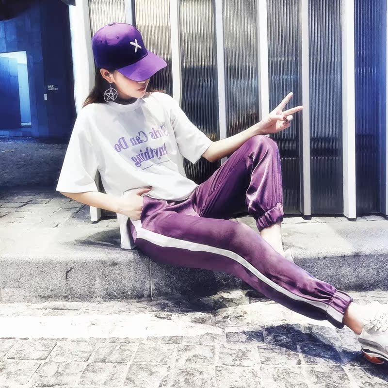 Short sleeve sports suit female summer 2020 new Han edition fashion loose Yang Pi age reduction network red two tide