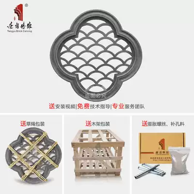 Tang language brick carving Antique green brick Ancient Chinese garden wall wall decoration Hanging Emblem school hollow flower window ornaments