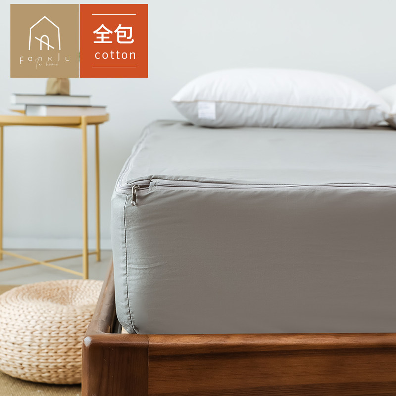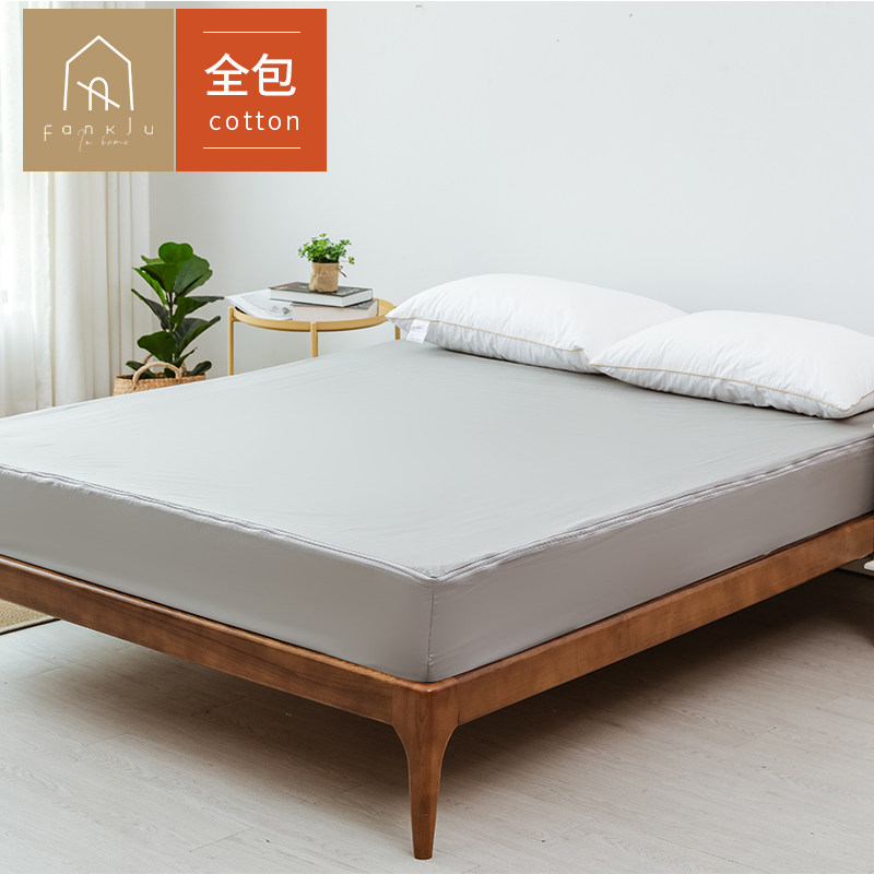 Fan Residence Six Sides Full Package A Class Full Cotton Bed Bamboo Hat Pure Color Minima Fixed Anti-Slip Breathable Water Washable Customizable Bed Cover