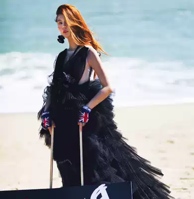 Photo studio theme clothing new seaside beach couple photo wedding travel sea view long tail deep V-neck dress