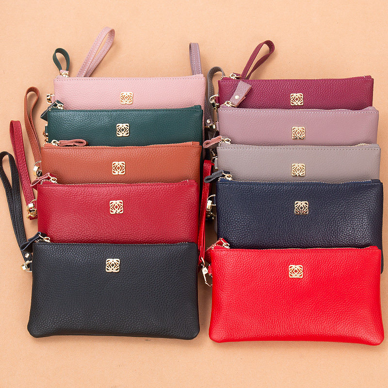 First layer cowhide clutch bag women's long leather 2022 new fashion simple thin soft leather mobile phone small coin purse