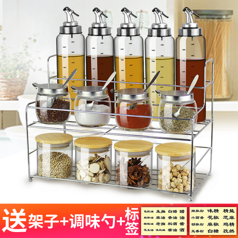 Fengshou seasoning box set Household kitchen oil bottle seasoning tank Seasoning box Seasoning bottle Chicken essence salt tank Glass new product