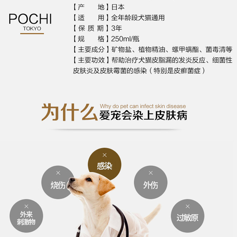 POCHI SHOWER GEL FUNGUS WASH CAT MILK RINGWORM 250ML PET ANTI-ITCH SHAMPOO BATH LIQUID SKIN CAT AND DOG DANDER