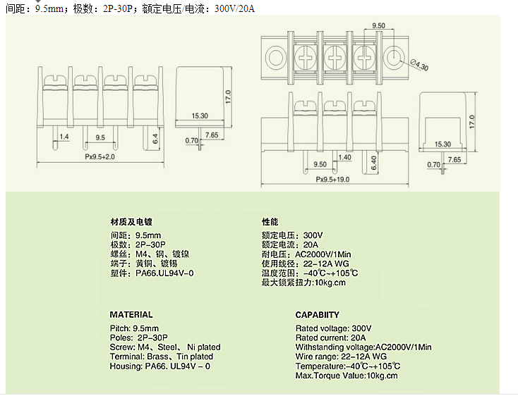 Fence-type terminals MG45C KF45C-pitch 9 5MM-2P3P4P5P6P7P8P9P10P12P middle foot