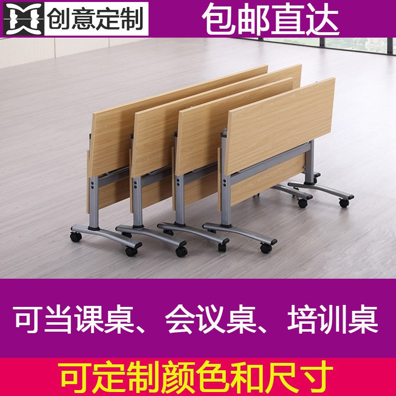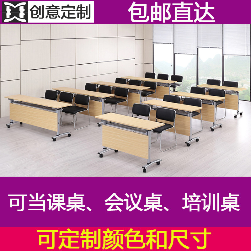 Office furniture double double folding table and chairs combined with brake wheel training table meeting table Easy small desk