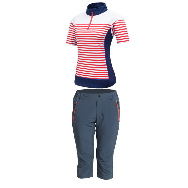 Mountaineering clothing women's suit thin summer running sports loose short-sleeved three-point pants outdoor hiking quick-drying pants