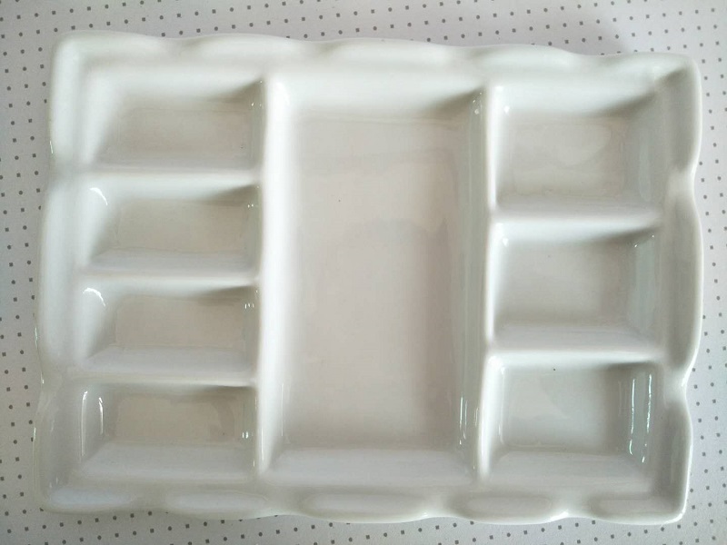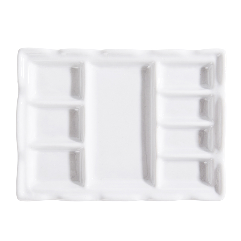 Ceramic rectangular color plate Students use Chinese painting paint plate Watercolor multi-grid painting plate Colorful drawing board multi-purpose pen holder