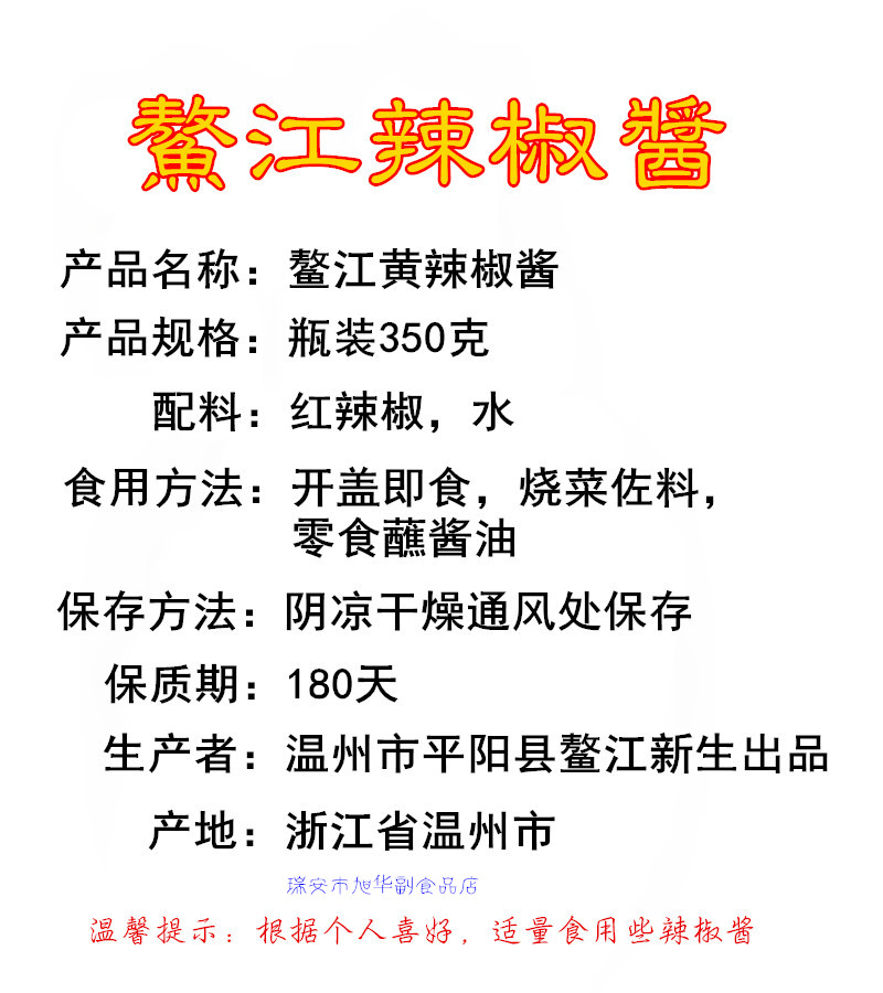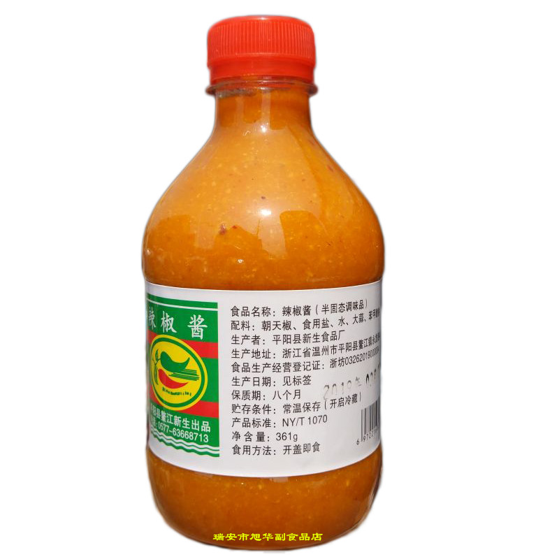 Wenzhou Pingyang Aojiang yellow chili sauce bottled 350 grams 2 farm local local local local local food specialty dips