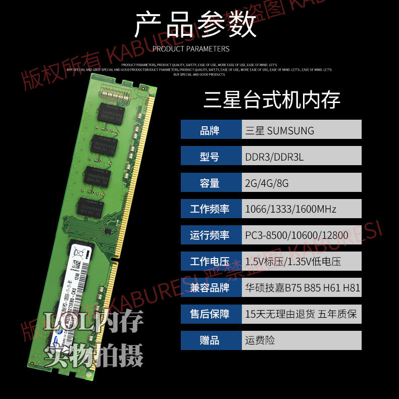 Original Samsung DDR3 2G 4G 8G 1600 desktop memory PC3-12800u 1066 1333