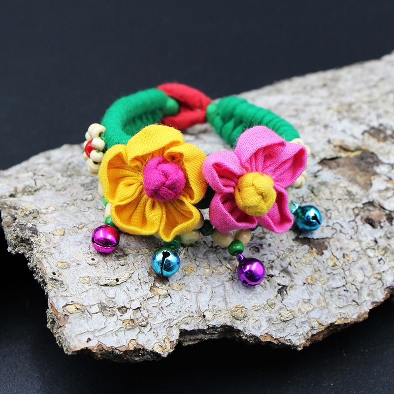 Batch of Yunnan Ethnic Wind Cloth Arts handmade Distinctive Bell-Hand Woven Flowers Dance Accessories Lady Ornaments