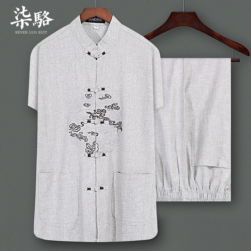 Middle-aged and elderly Tang suits Men's short sleeves Chinese cotton numb daddy Xia dress Chinese wind shirt linen retro Han suit men's clothing