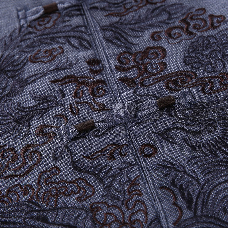Deep grey double dragon suit light grey double dragon suit Mihuang double-dragon suit deep grey linen double-dragon blouses light grey double-dragon linen blouses rice yellow double-dragon blouses