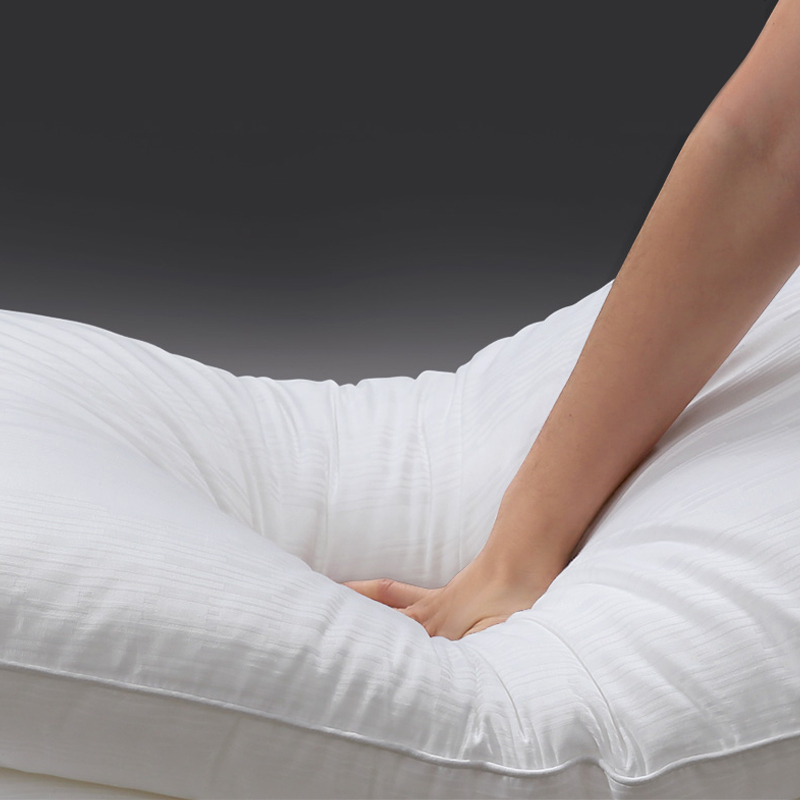 Cotton jacquard hotel pillow pair (about 18 cm high, checkered strip jacquard random hair)