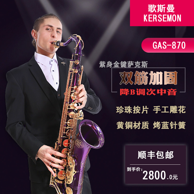 Gosman musical instrument B-flat tenor purple gold key saxophone professionally playing saxophone