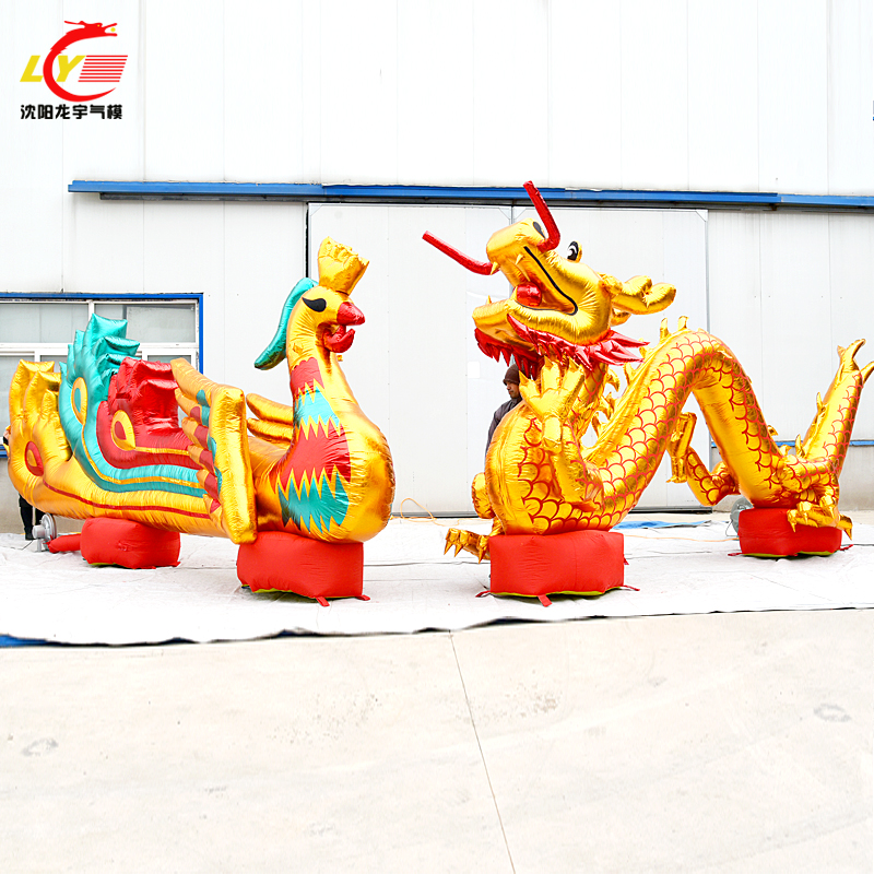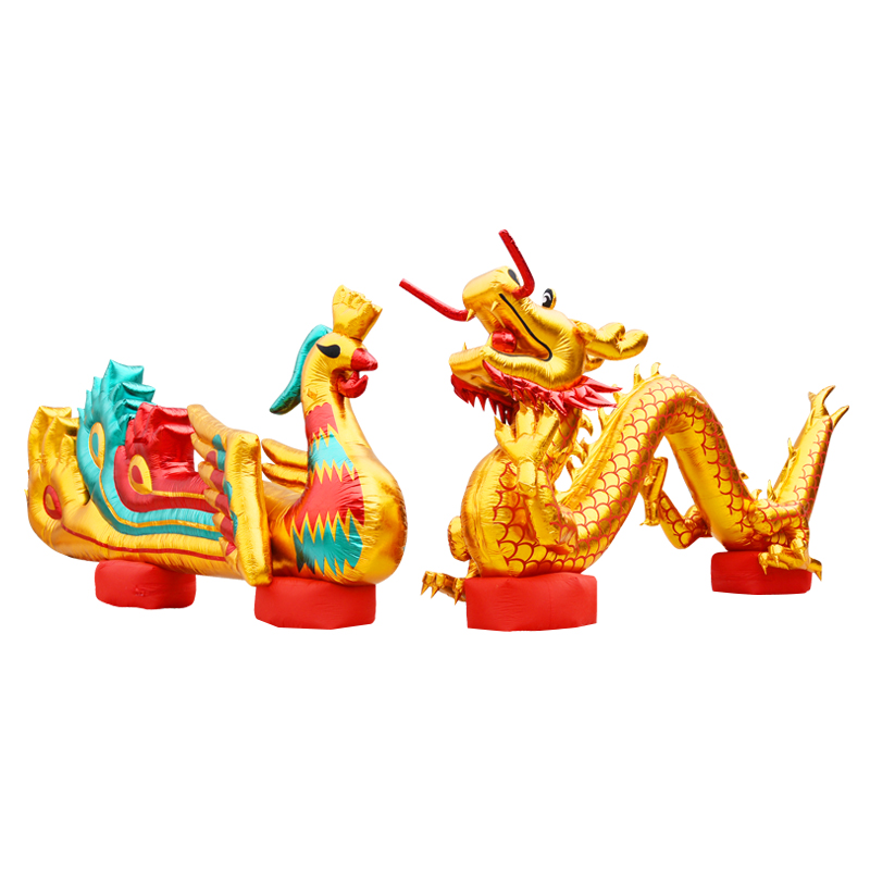 New inflatable luxury lying dragon inflatable gold double dragon and phoenix with base opening ceremony wedding arch rainbow door