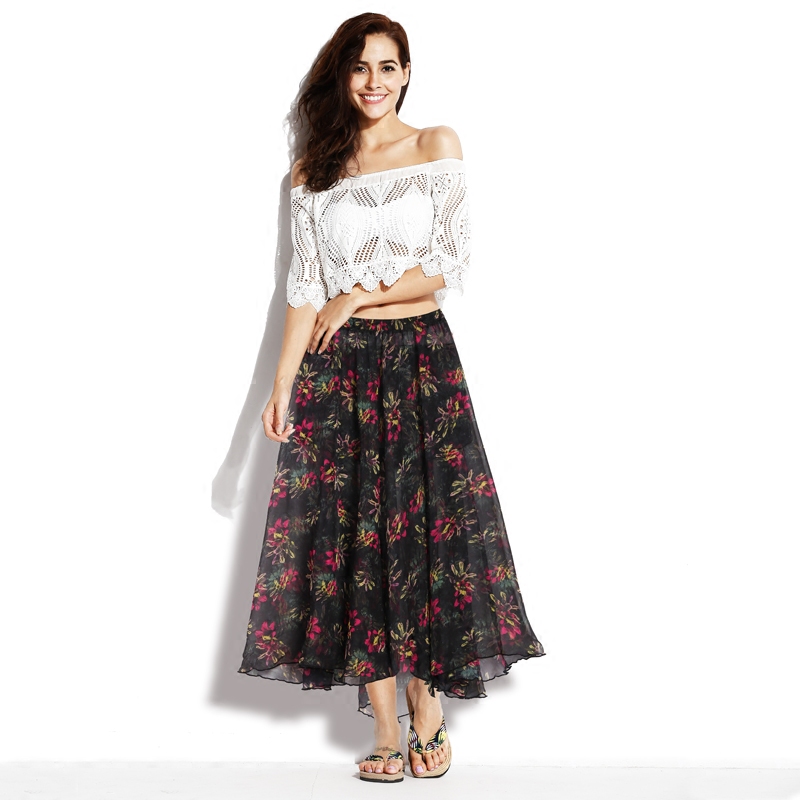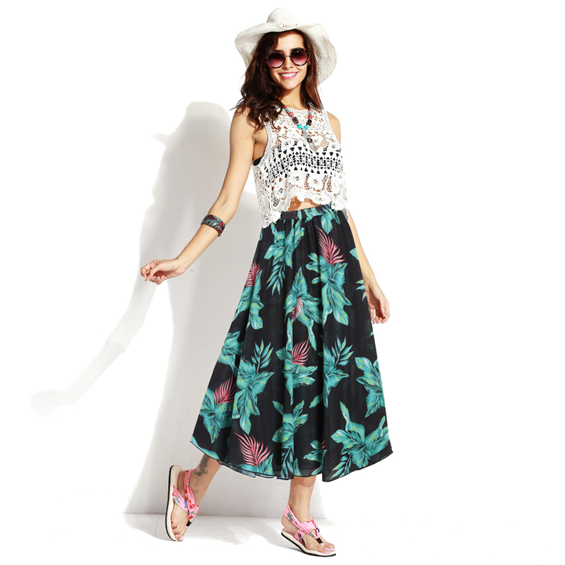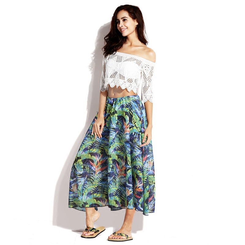 Summer new high waist women Summer Snow spinning Slim Half Body Dress Long Version Beach Holiday Dresses A Character Large Pendulum Printed Long Dress