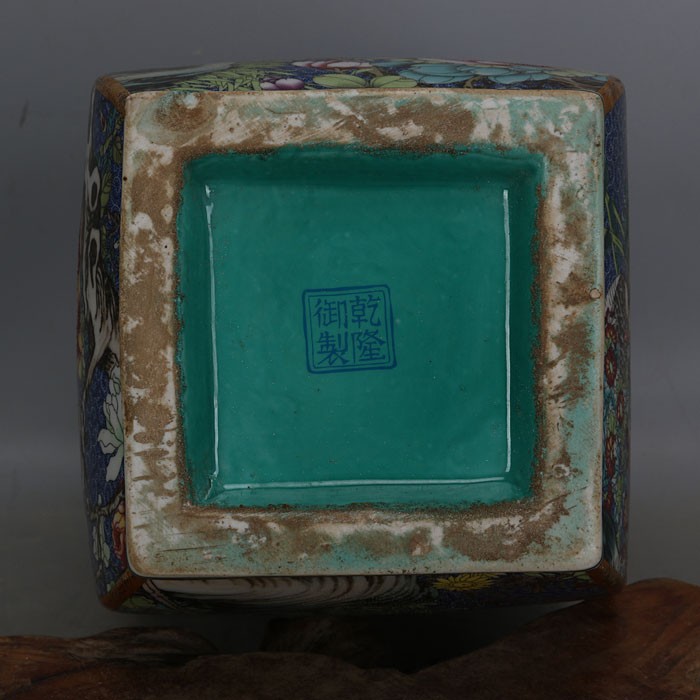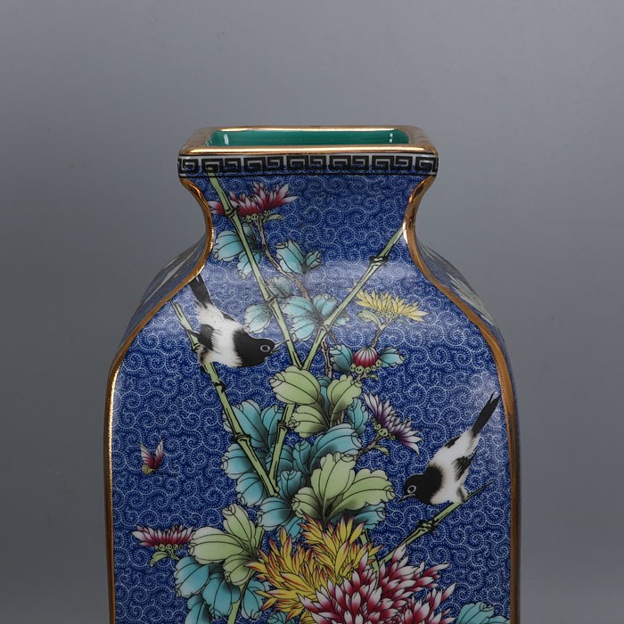 Qing Dynasty Qianlong Imperial blue pastel flower and bird pattern square bottle Jingdezhen antique porcelain antique collection ornaments