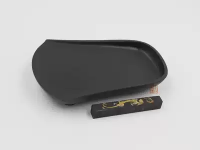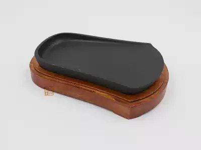 Antique three-legged dustpan Stone Inkstone jxd keng black dragon tail 1990s old stone Cinnamomum camphora wooden collection inkstone