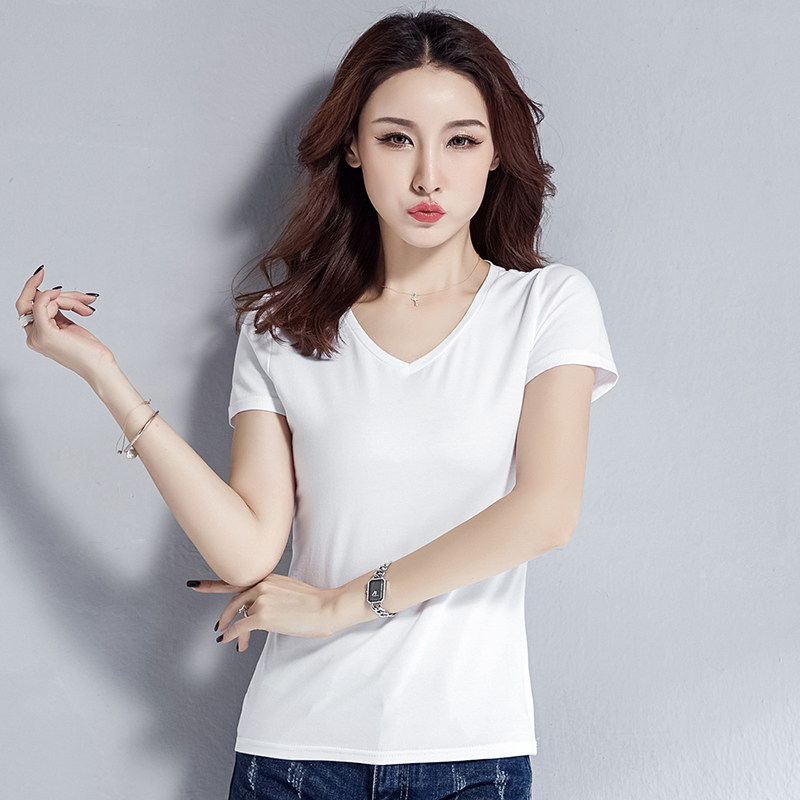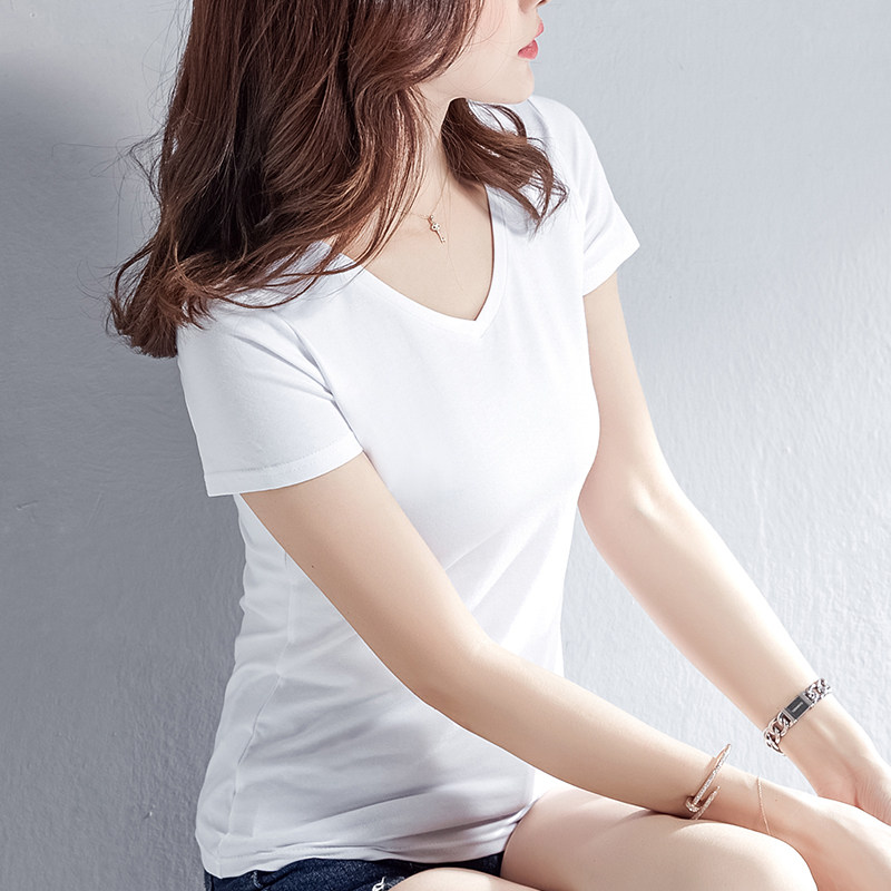 White V collar T-shirt woman short sleeves Body Pure Cotton Summer Dress 2022 New Fashion European and American Short Tight T-Shirt Blouse