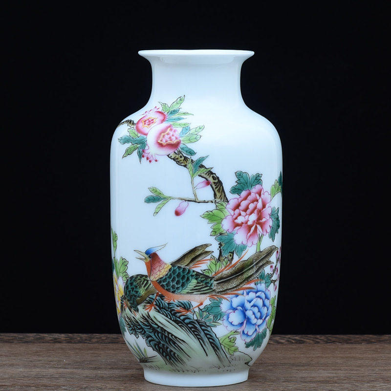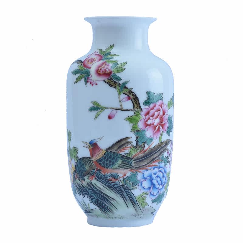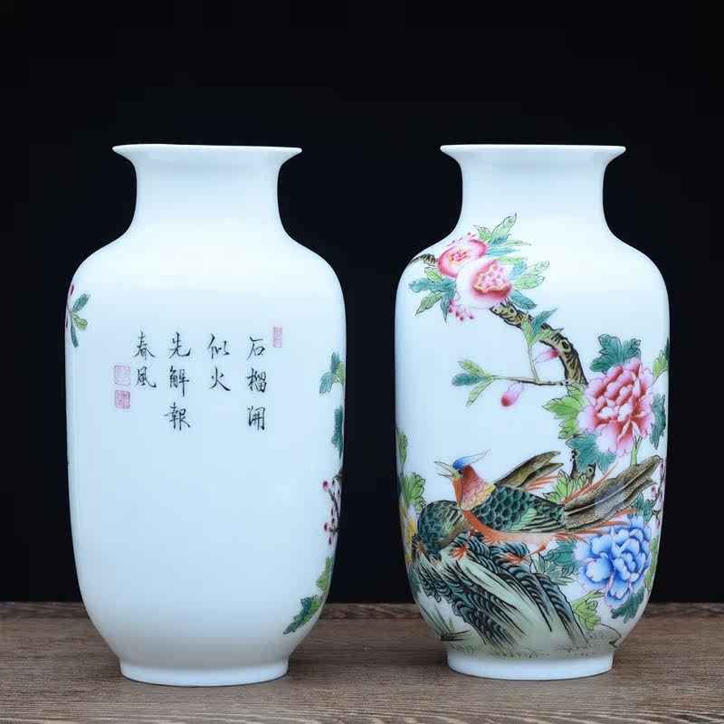 Enamel Color Flower Bird Vase Hand-painted View of the Town Porcelain Vase Antique Porcelain Bou Shelf Decoration Pendulum