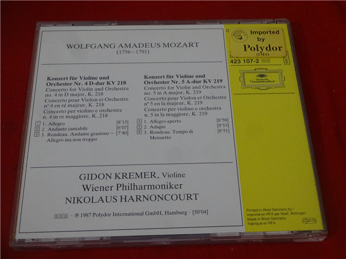 Mozart Violin Concertos Nos 4-5 Kremer xide full silver ring well 9536