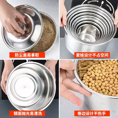 Stainless steel basin household oil basin with lid round seasoning tank beating egg and basin bowl male kitchen seasoning taste Cup