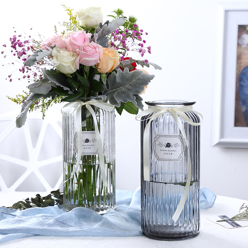 Creative European-style vase transparent glass color cylindrical vase hydroponic fresh flowers dried flowers living room decoration flower arrangement ornaments