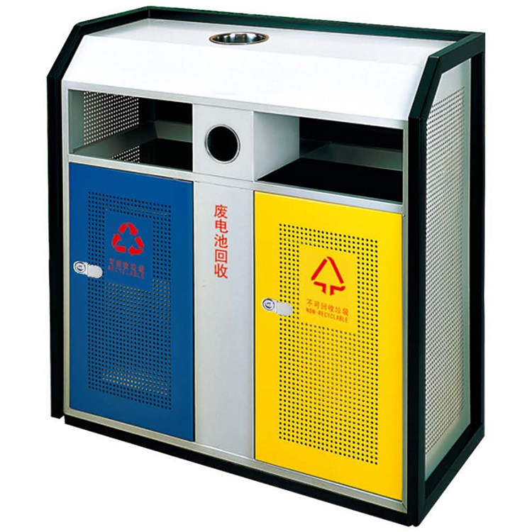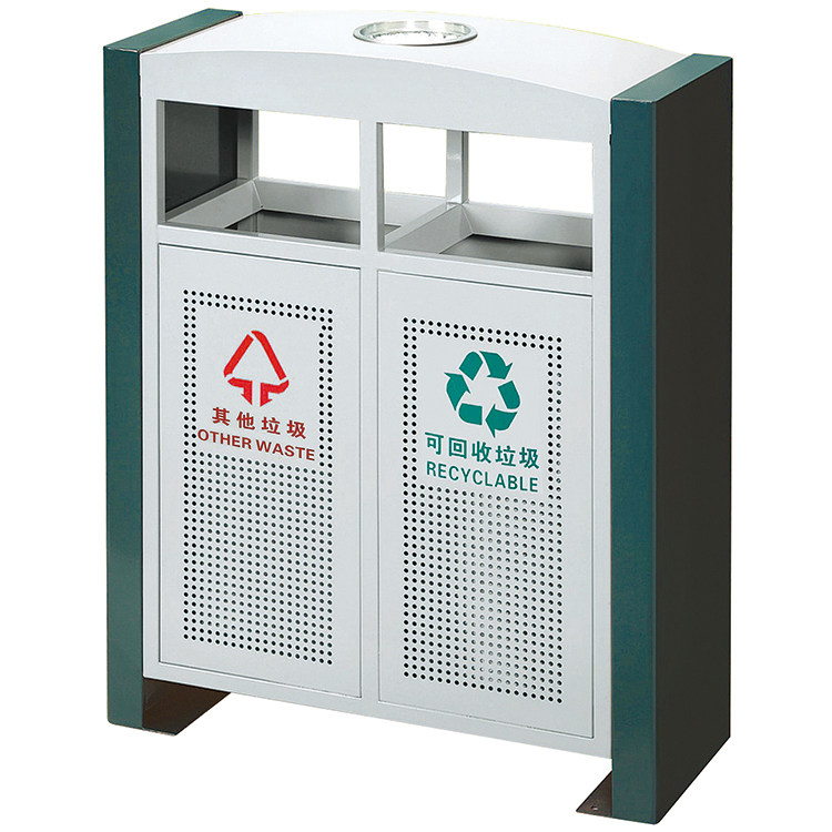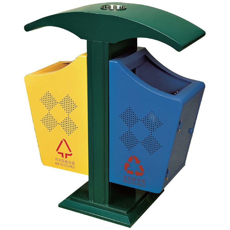 Outdoor Double Sorting Seat Ground Trash Cans Baking Lacquered Large Fruits Leather Case Scenic Area Residential Sanitation Dustbin With Lid Tobacco Cylinder