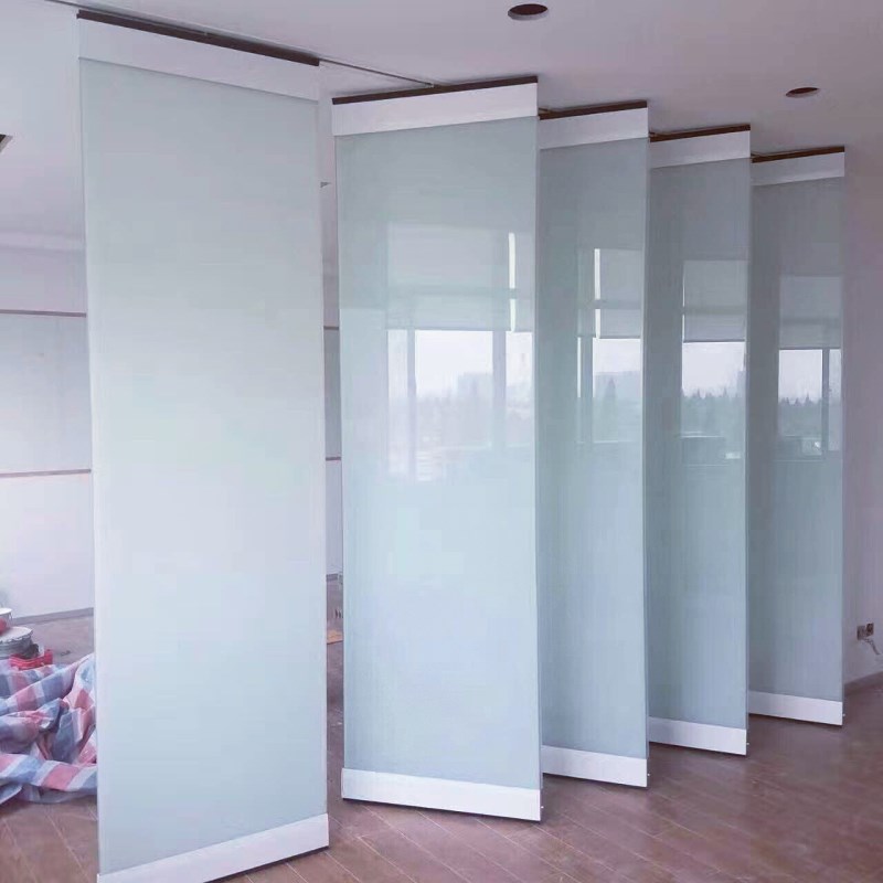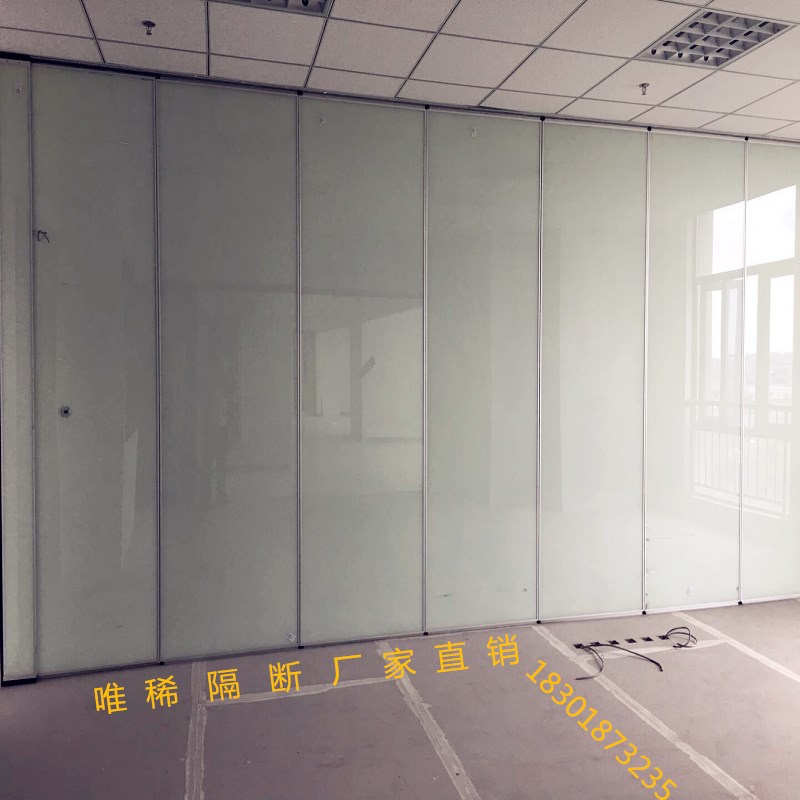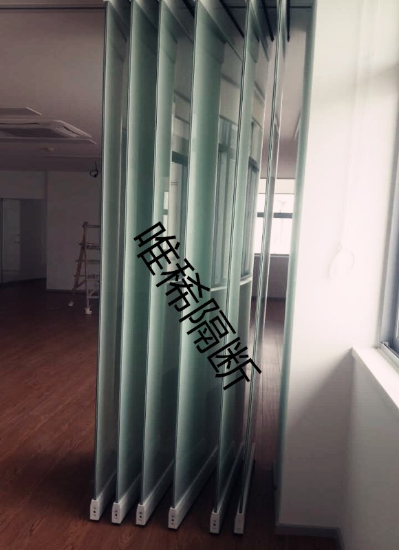 Office classroom aluminum alloy tempered glass folding partition wall frameless push-pull double mirror retractable high partition