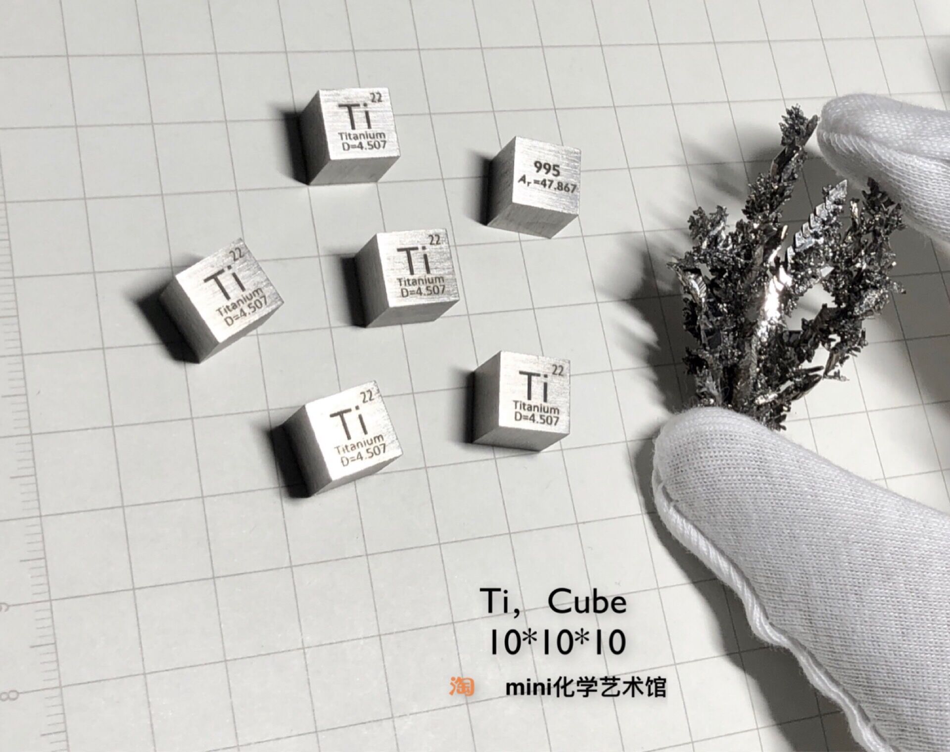 Titanium cubic metal titanium periodic phenotype cube length 10mm edge weight approximately 4 57g Ti≥99 5%