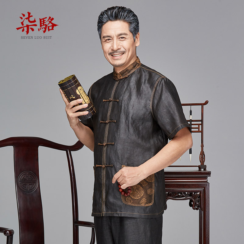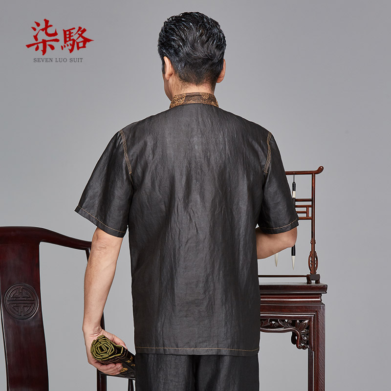 Mulberry silk short-sleeved men's real silk satin Chinese grandpa old man clothes middle-aged and elderly dad Xiangyunsha shirt