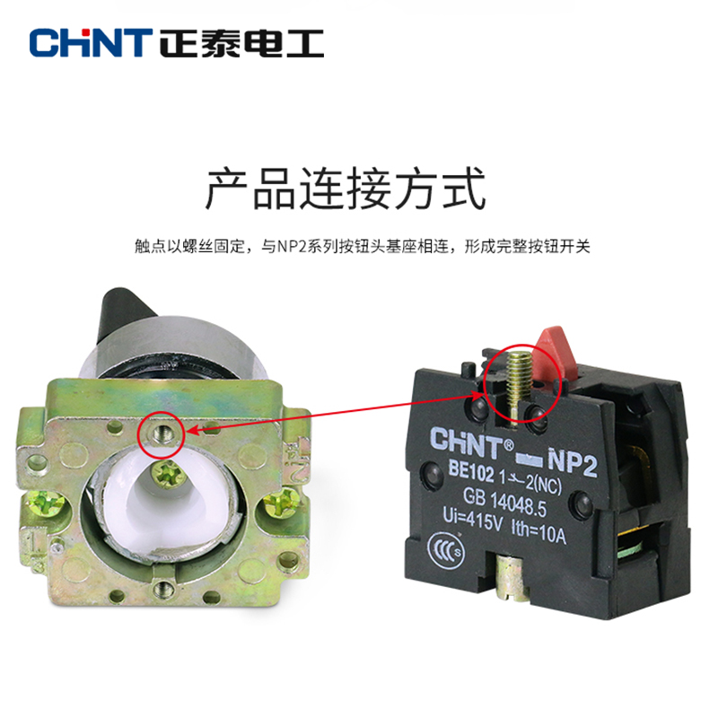 Zhengtai metal head normally closed auxiliary contact NP2-BE102 often closed red