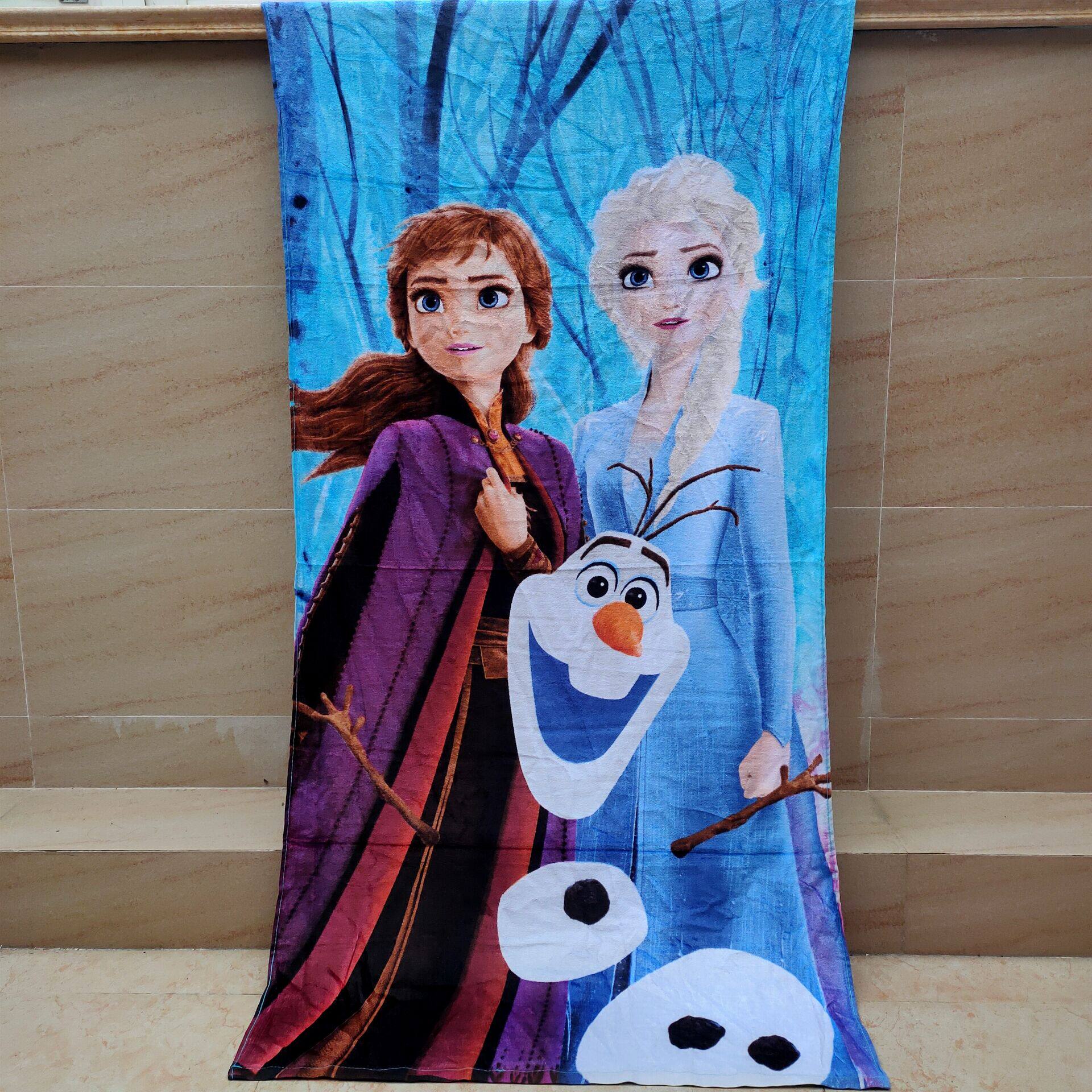 Foreign trade tail single cartoon girl bath towel cotton children's beach towel Pure cotton cut velvet frozen frozen