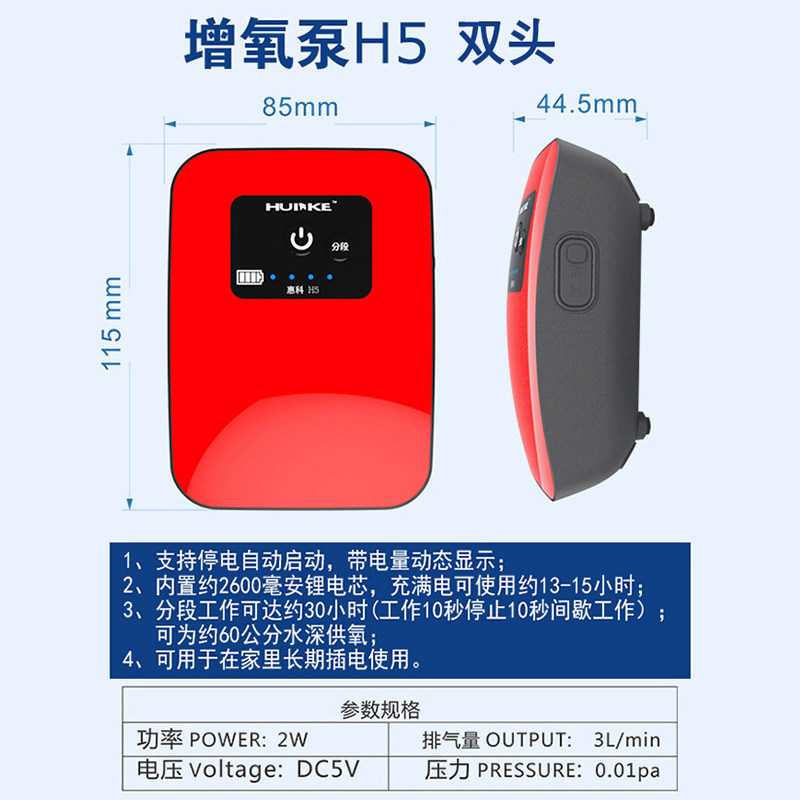 Whirlco H3H5 Oxygen Pump Oxygenation AC/DC Ultra Silent Lithium Battery Fishing Power Outage USB Charging