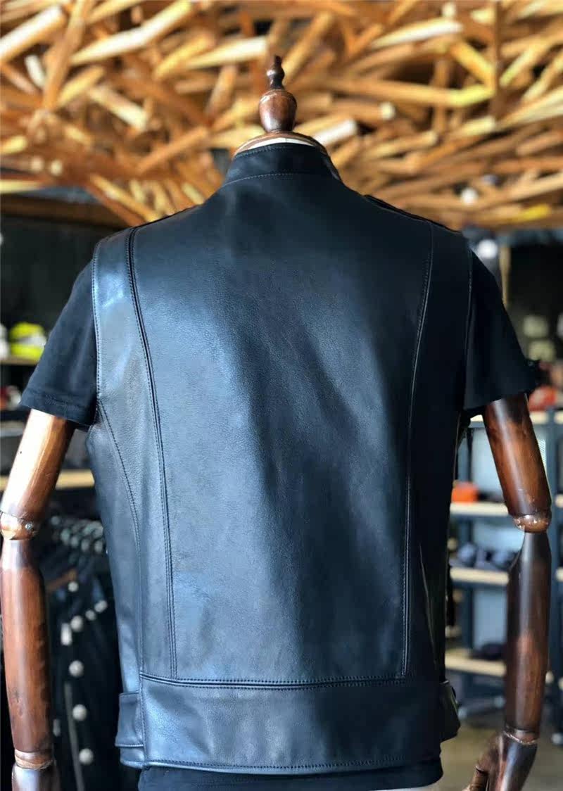 METAL HEART high-end custom-made retro locomotive style leather vest Inn style leather waistcoat Bull Leather Black
