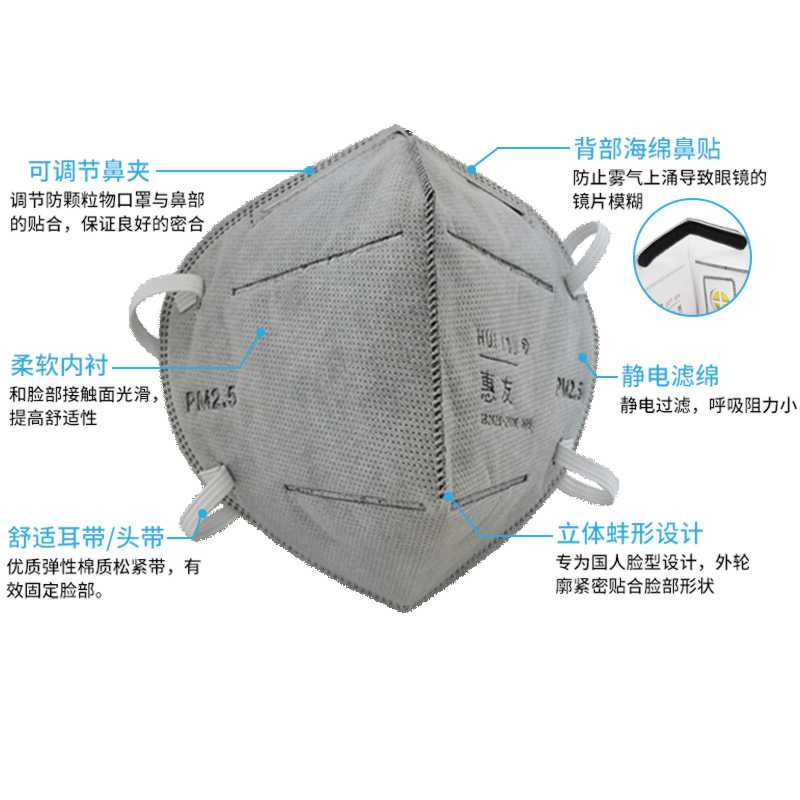 Wheeyou KN95 anti-smog PM2 5 mask dust-proof and breathable activated carbon formaldehyde polished and decorated dust headwear type