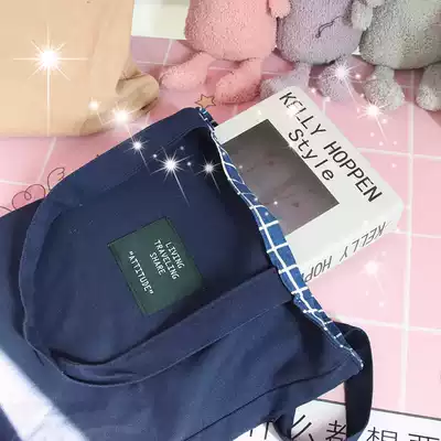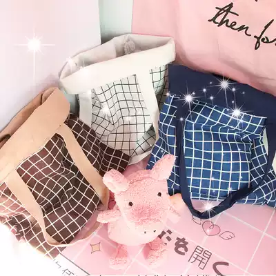 Japanese summer simple double-sided plaid canvas bag casual all-match literary retro plaid shopping bag shoulder bag female