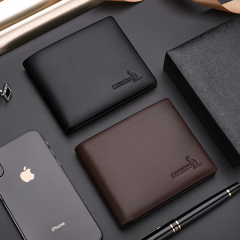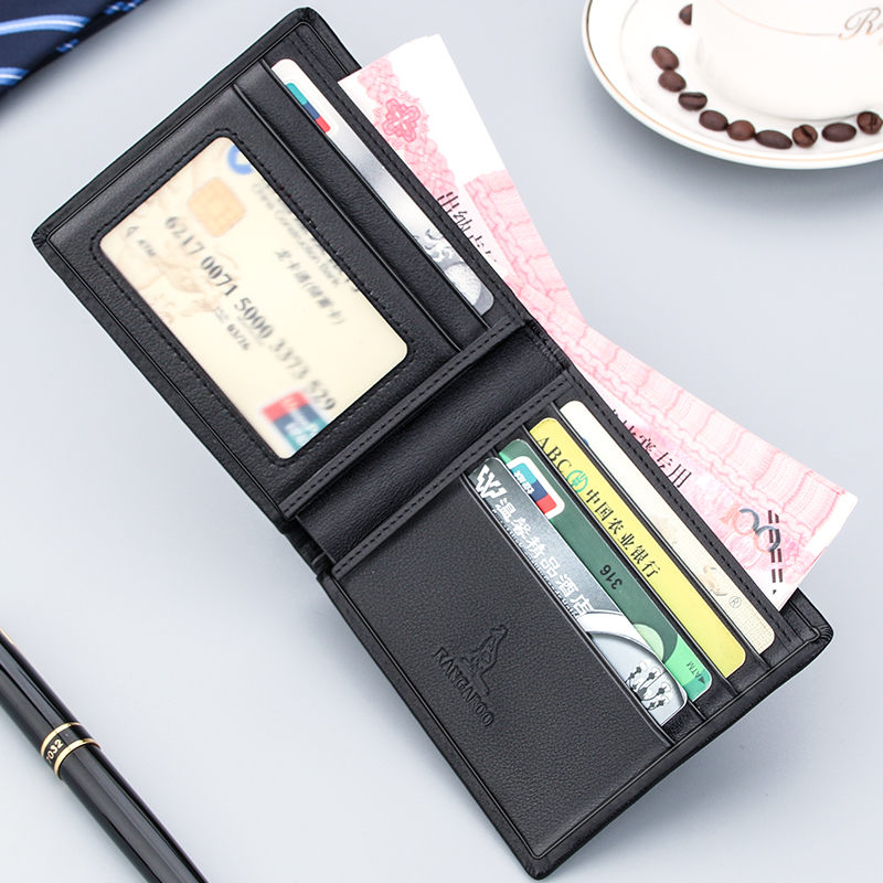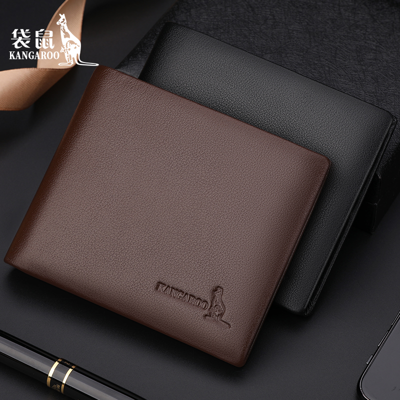 Kangaroo wallet Male Short Genuine Leather Youth Cross Section Bull Leather Thin Money Clip Men Business Casual Leather Clips Soft