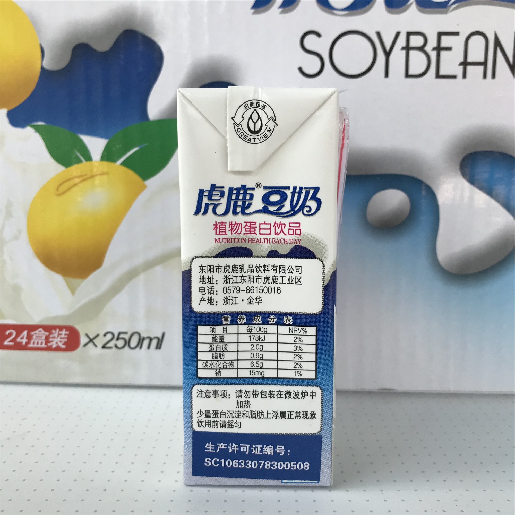 Dongyang Tiger Deer Bean Milk Drink Reinforced Children's Nutritious Breakfast Bean Milk Soy Milk 250ml * 24 Box