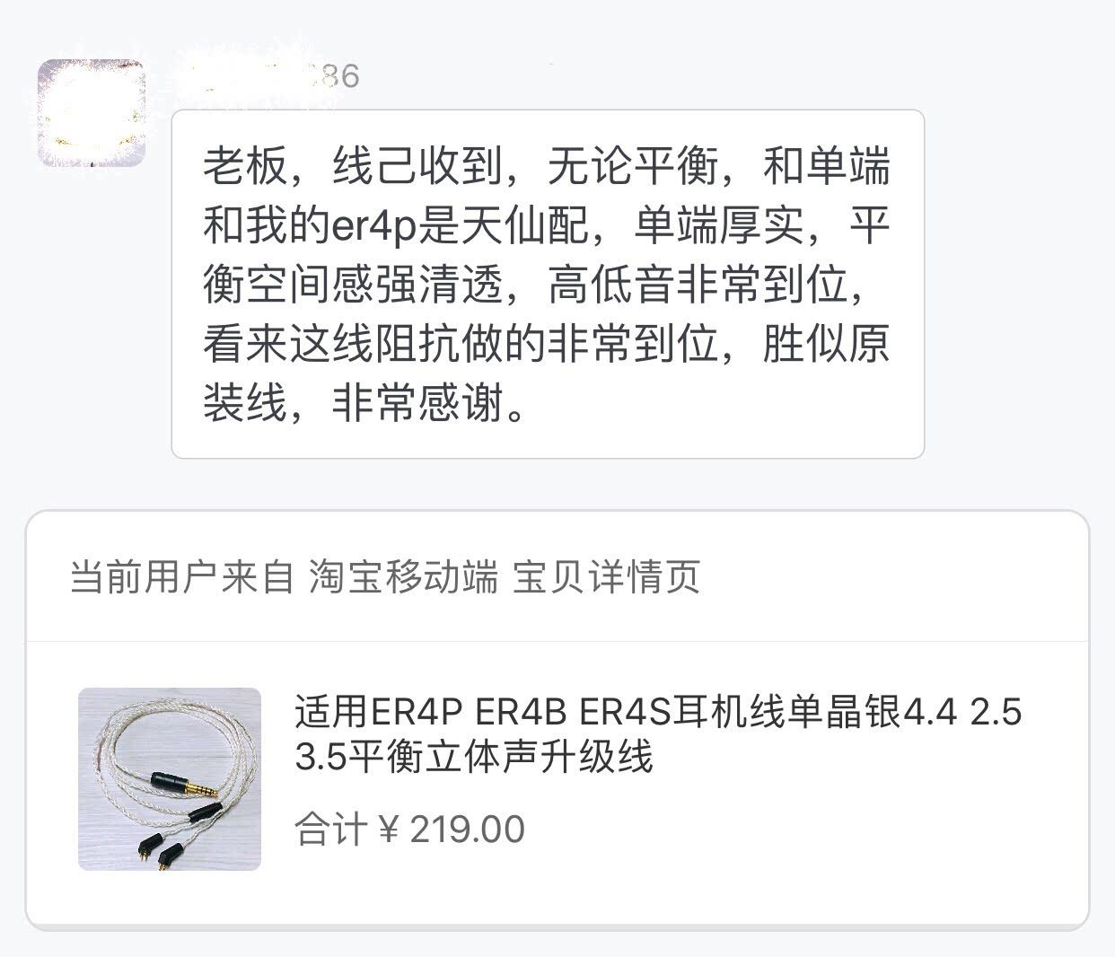 Suitable for sound Terme ER4P ER4B ER4S ER4S 2 5 ear machine Line 4-core single crystal silver 4 4 Balance Upgrade Line
